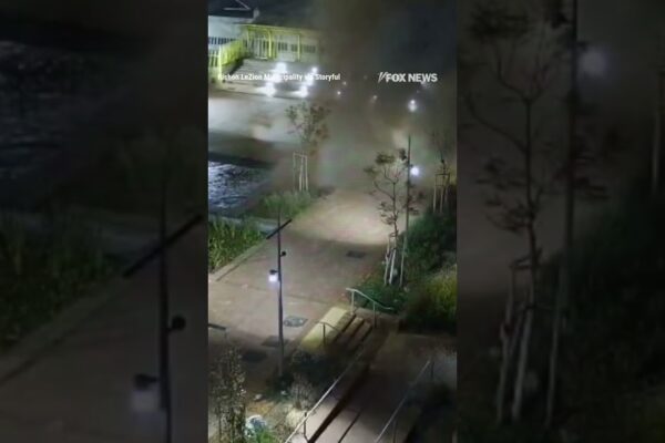 Surveillance footage shows a small explosion in the schoolyard of an elementary school in northern Israel. The explosion was reportedly