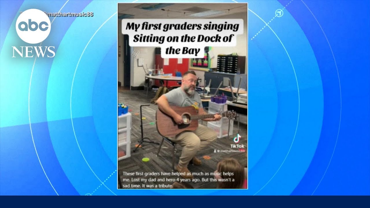 First-grade teacher Matt Hart is using his guitar and classic songs to inspire his young students.